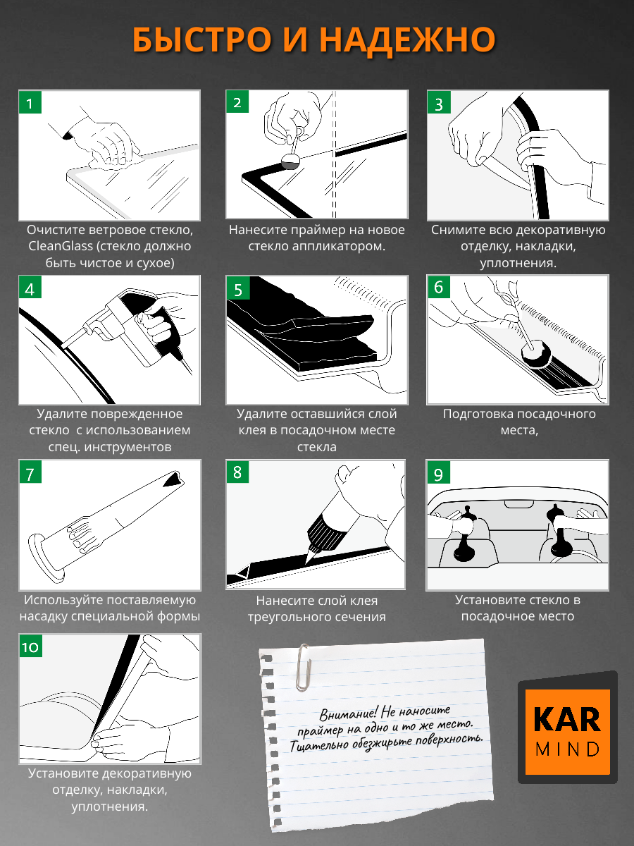 - Праймер для вклейки стёкол 10 мл — 1шт.